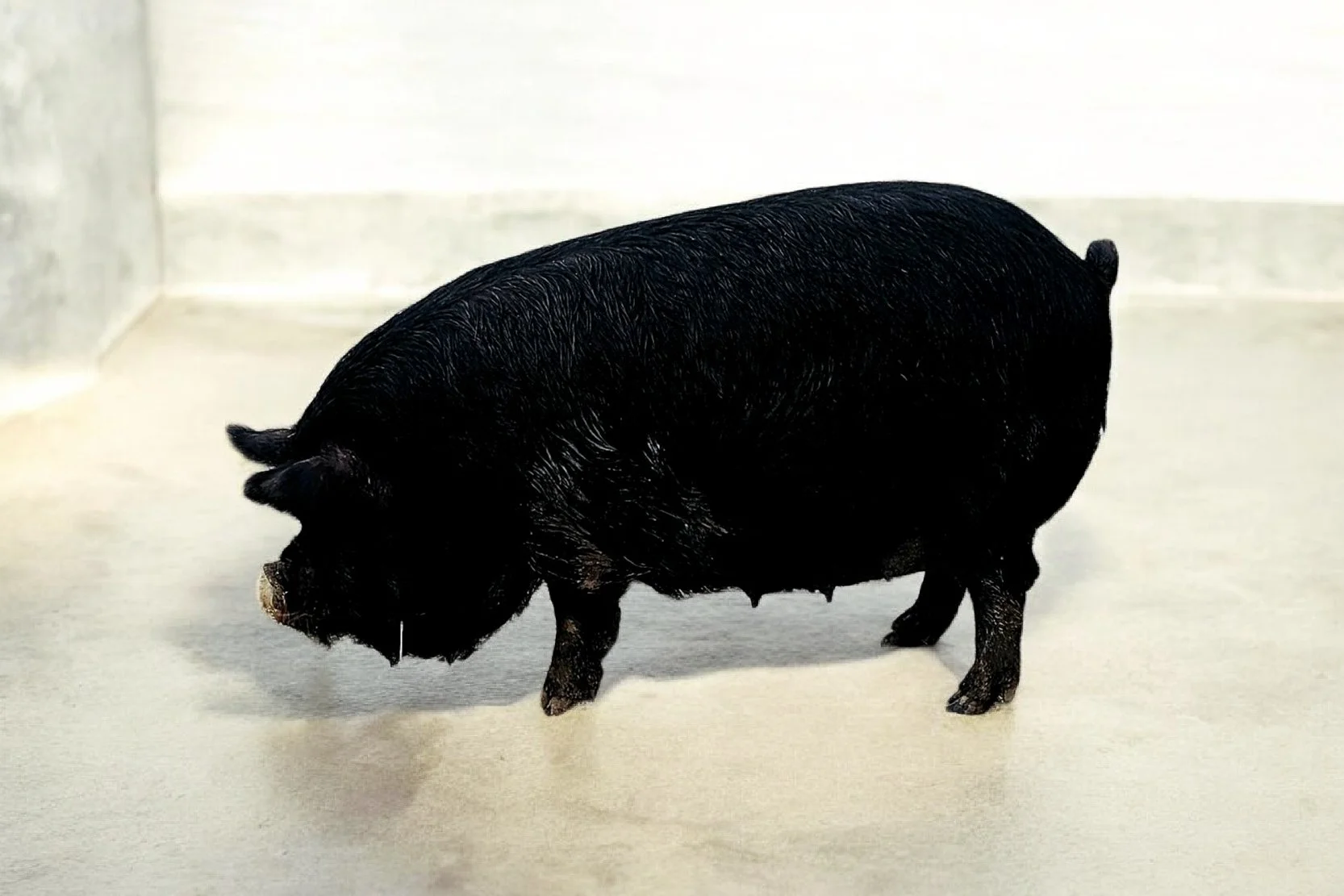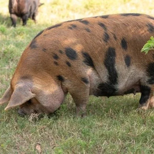 MAGNOLIA is a well-proportioned, black and ginger sow with excellent conformation. Her upturned snout and full body are indicative of her superior breeding. Originally sourced from Liberty Farms, we anticipate that she will contribute to the growth of our meat program by introducing desirable size characteristics to our breeding stock.
